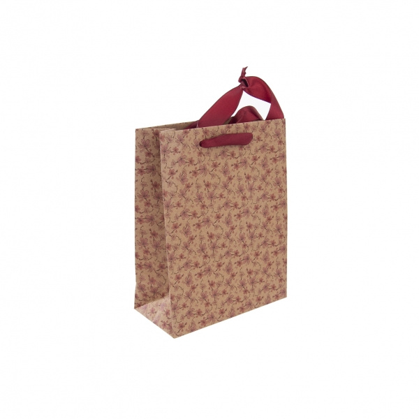 Dárková taška s dekorem. Materiál: papír. Rozměry: 14x7x18 cm.