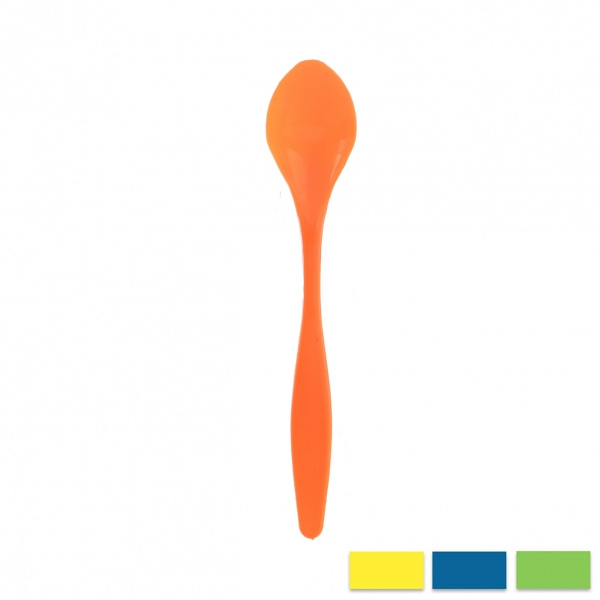 Lžička barevná. Materiál: plast. Assort barev. Rozměry: d. 14 cm, š. 2,5 cm.