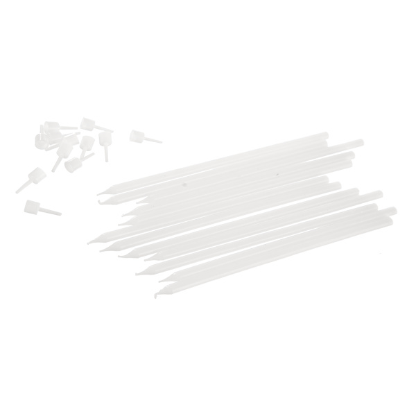 Dortové svíčky s nástavci jsou nedílnou součástí každé oslavy narozenin. V sadě 12 bílých svíček + 12 bílých plastových nástavců s bodcem pro zapíchnutí do dortu. Materiál: vosk, plast. Rozměry: d. 14,5 cm.