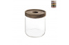 Dóza s víčkem s těsněním na uskladnění potravin. Zachová aroma i chuť vložených potravin, potraviny nezvlhnou. Materiál: borosilikátové sklo, akáciové dřevo, silikon – těsnění. Rozměry: objem 0,73 l, pr. 10 cm, v. 12 cm. Do myčky je vhodná pouze skleněná část, není vhodná do MVT.