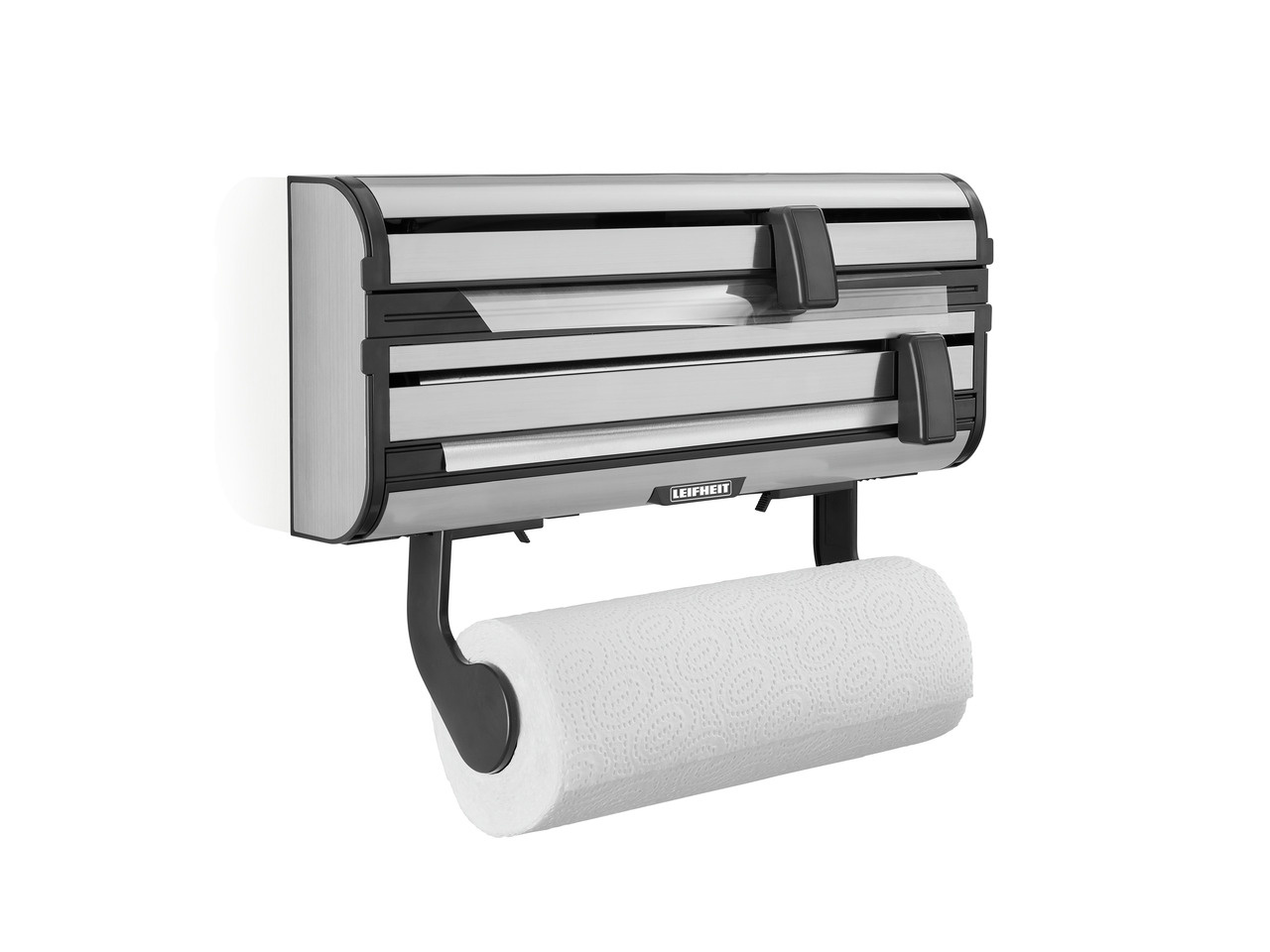 Nový Parat Royal je nový nástěnný držák folií a rolí z nerezové oceli s vylepšenými řezacími vlastnostmi. Samostatné přihrádky na alobal a průhlednou potravinářskou fólii obzvláště usnadňuje výměnu rolí. - Potravinářská folie a alobal jsou vždy po ruce a snadno a čistě se řezají - Vzhled vysoce kvalitní nerezové oceli - Pohodlné ovládání jednou rukou - Odnímatelný držák na kuchyňské utěrky