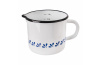 Hrnek smaltovaný s hubičkou a vnitřní odměrkou, vhodný na všechny typy spotřebičů. Vhodný do myčky nádobí. Dekor bílé kvítky. Rozměr: vnitřní pr. 12 cm, v. 11 cm, objem 1,2 l.