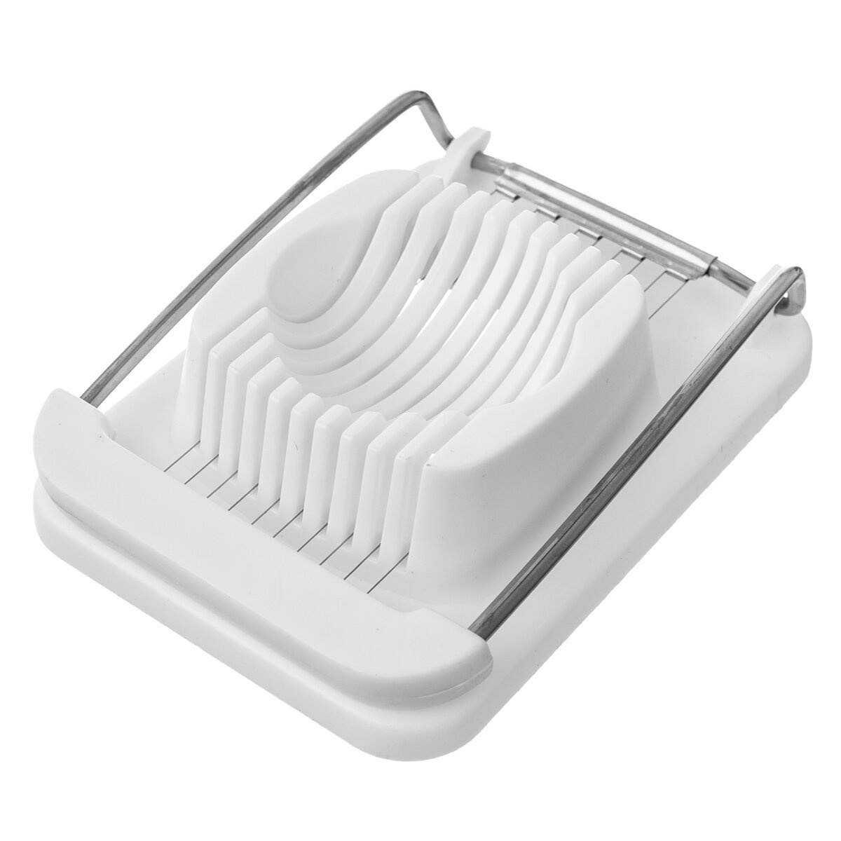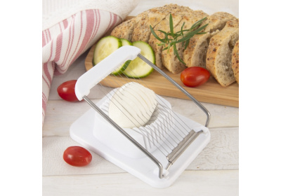 Kráječ vajec Vám rychle a snadno nakrájí vajíčko na plátky, popřípadě na drobné kostičky. Materiál: plast PS, kov. Rozměry: 12,3x8,8x3,2 cm.