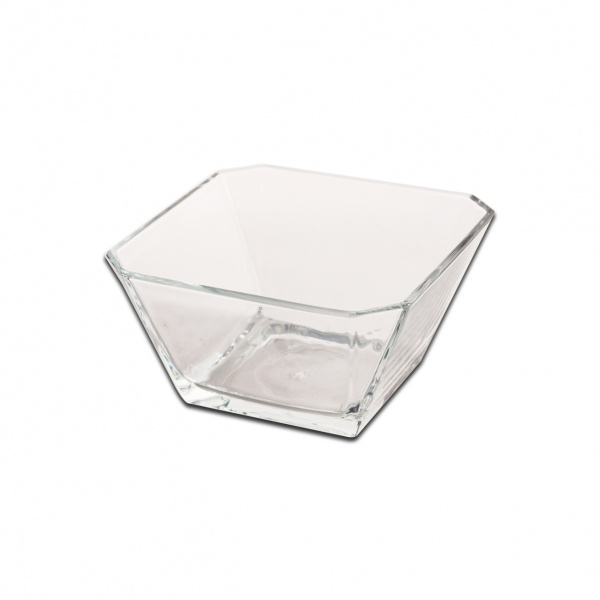 Miska hranatá. Materiál: sklo. Rozměry: 10x10x5,5 cm.