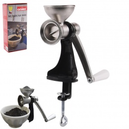 Mlýnek na mák je nepostradatelný při pečení buchet, makových závinů, koláčků, dále je vhodný na mletí semínek, chilli papriček apod. Těleso a drtič jsou vyrobeny z nerezavějící oceli, ostatní díly z ocel. materiálu, plastu a pryže. Je možná regulace hrubosti mletí. Připevňuje se pomocí šroubu k pracovní desce nebo ke stolu, max. tloušťka desky 3,5 cm. Nemyjte v myčce na nádobí. Rozměry: výška od stolu 16 cm, násypka pr. 6 cm.