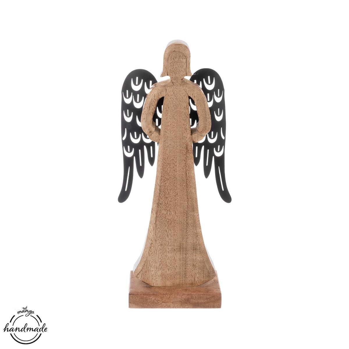 Anděl s kovovými křídly z přírodního mangového dřeva vnese do vašeho domova klid, harmonii a dotek jemné elegance. Tato nádherná dekorace okouzlí svým jednoduchým, ale zároveň silně působivým designem, který podtrhuje přirozená kresba dřeva. Každý anděl je originál – díky ručnímu zpracování a přírodnímu materiálu. Tento anděl je nejen krásným doplňkem interiéru, ale také ideálním dárkem pro někoho, na kom vám záleží. Materiál: mangové dřevo, kov. Rozměry: š. 14,5 cm, v. 32,5 cm.