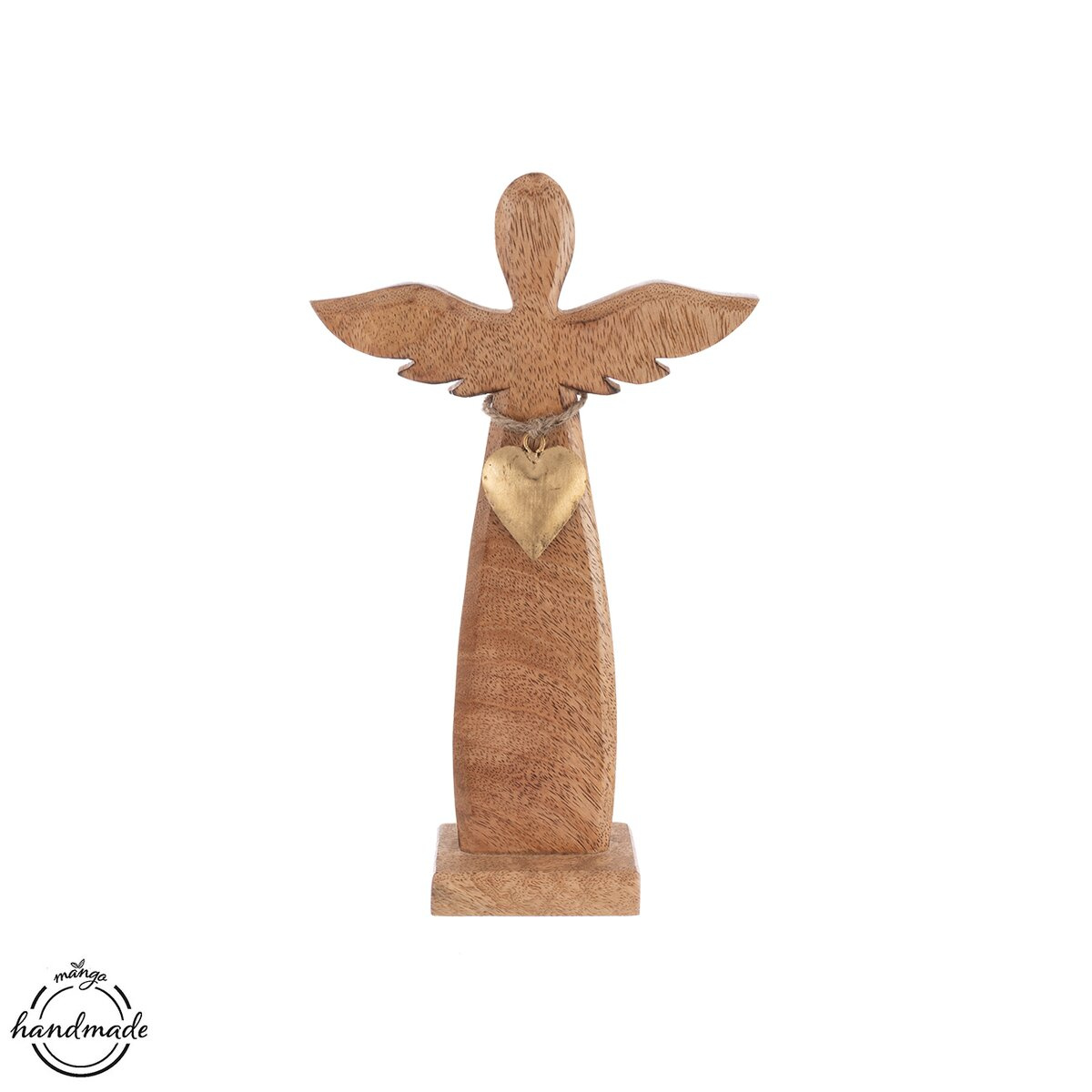 Dekorace ANDĚL s kovovým srdcem ozdobí vaši domácnost nejen v období Vánoc, využít ji můžete po celý rok. Vhodná také jako dárek. Materiál: dekorativní mangové dřevo, kov, jutový provázek. Rozměry: š. 16 cm, v. 26 cm.