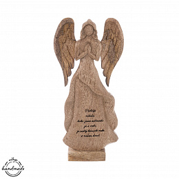 Anděl z přírodního mangového dřeva vnese do vašeho domova dotek vzpomínek, lásky a klidu. Tato nádherná dekorace okouzlí svým jednoduchým, ale zároveň silně působivým designem, který podtrhuje přirozená kresba dřeva. Každý anděl je originál – díky ručnímu zpracování a přírodnímu materiálu. Na přední straně anděla je nápis „Protože někdo, koho jsme milovali, je v nebi, je malý kousek nebe v našem domě“, který dodává dekoraci hluboký osobní význam a přináší jemné připomenutí těch, kteří už nejsou s námi – ale stále zůstávají v našich srdcích. Tento anděl je nejen krásným doplňkem interiéru, ale i symbolem lásky, která nikdy neumírá. Materiál: mangové dřevo. Rozměry: š. 16,5 cm, v. 36 cm.