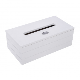 Stylový box na uložení papírových kapesníčků dodá interiéru moderní a sofistikovaný vzhled – ať už ho umístíte do koupelny, obývacího pokoje, kanceláře nebo ložnice. Je praktickým i dekorativním doplňkem, který udrží kapesníčky po ruce a zároveň esteticky zapadne do jakéhokoli prostoru. Materiál: dřevovláknitá deska MDF, kov. Rozměry: 25x13,5x9 cm.