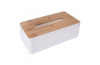 Box pro uložení krabičky s papírovými kapesníky. Materiál: plast PP, bambus. Rozměry: 26x13x8,5 cm.
