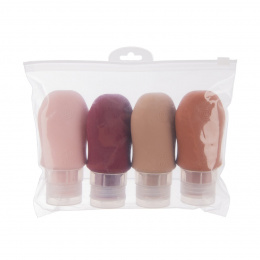 Šikovná a prostorově úsporná sada čtyř cestovních lahviček s vyznačeným objemem 60 ml je ideálním řešením pro přenášení kosmetických přípravků, jako jsou šampony, sprchové gely, tekutá mýdla, krémy a další. Díky kompaktní velikosti šetří místo v zavazadle, a přitom poskytuje dostatek objemu pro běžné potřeby na cestách. Lahvičky jsou vyrobeny z materiálu, který umožňuje snadné dávkování obsahu, a široké hrdlo usnadňuje jejich plnění i čištění. Další vychytávkou je přísavka pro umístění ve sprše. Objem je prakticky vyznačen na lahvičce. Lahvičky lze používat opakovaně, což je nejen ekonomické, ale i šetrné k životnímu prostředí. Průhledné pouzdro je na plastový zip, takže jej velmi snadno otevřete a opět uzavřete. Materiál: silikon, plast PP (víčko lahvičky), plast PVC (pouzdro). Rozměry: 18x4x14 cm, lahvička o. 60 ml, pr. 4 cm, v. 11 cm. Pro plnění lahvičky odšroubujte horní část plastového víčka zpět (dolní část víčka zůstává nasazena na lahvičce), lahvičku naplňte a horní část víčka našroubujte zpět. Při plnění/uzavírání je nutné vždy zkontrolovat, zda je silikonový díl lahvičky dobře připevněn k dolní části plastového víčka (aby byla lahvička na dolní díl víčka správně připevněna a těsnila).