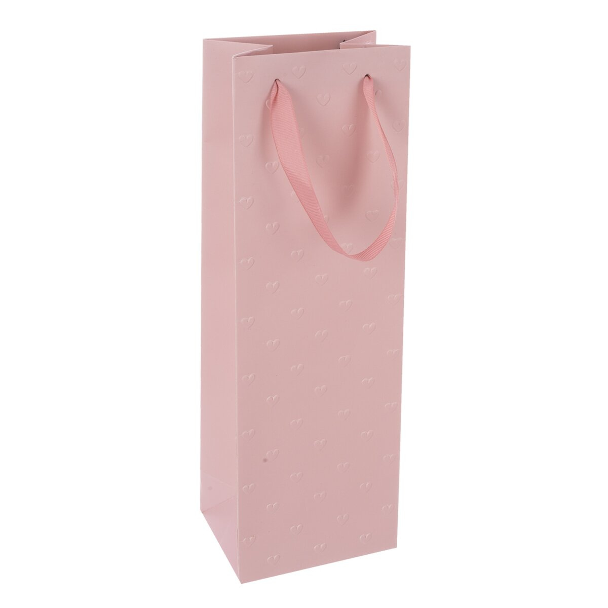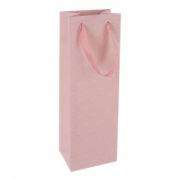 Dárková taška se dvěma uchy z růžové stuhy, plastický dekor z obou stran, doplněna jmenovkou. Růžová. Materiál: papír, stužka – polyester. Rozměry: 12x9x36 cm.