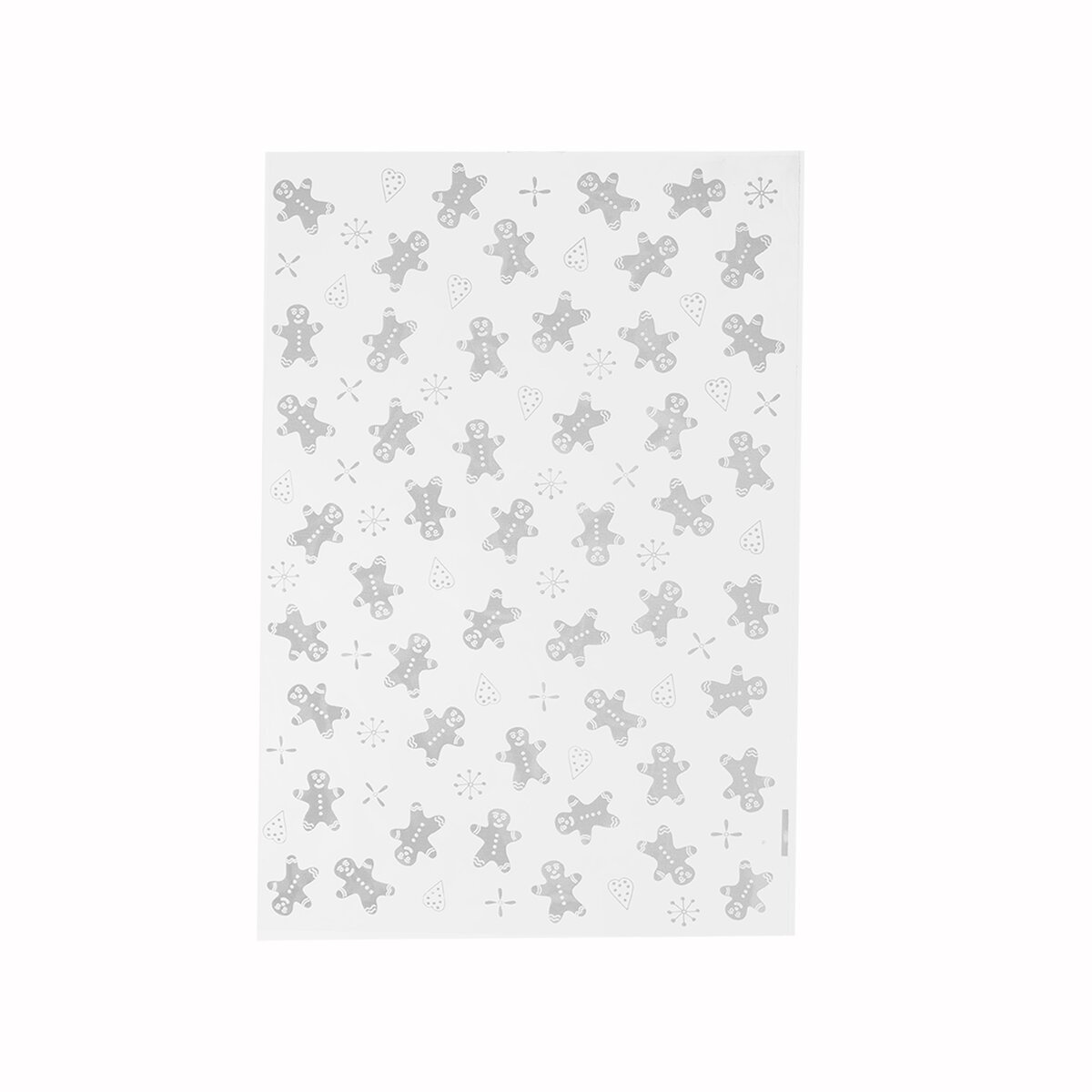 Průhledný celofánový sáček s jemným vánočním potiskem perníčků. Ideální na domácí cukroví, perníčky, sušenky, pralinky, vánoční mýdlo či drobné kosmetické produkty... Ideální pro balení vánočních dárků. Sada 100 ks. Materiál: plast BOPP. Rozměry 25x17 cm. Designed by Orion.