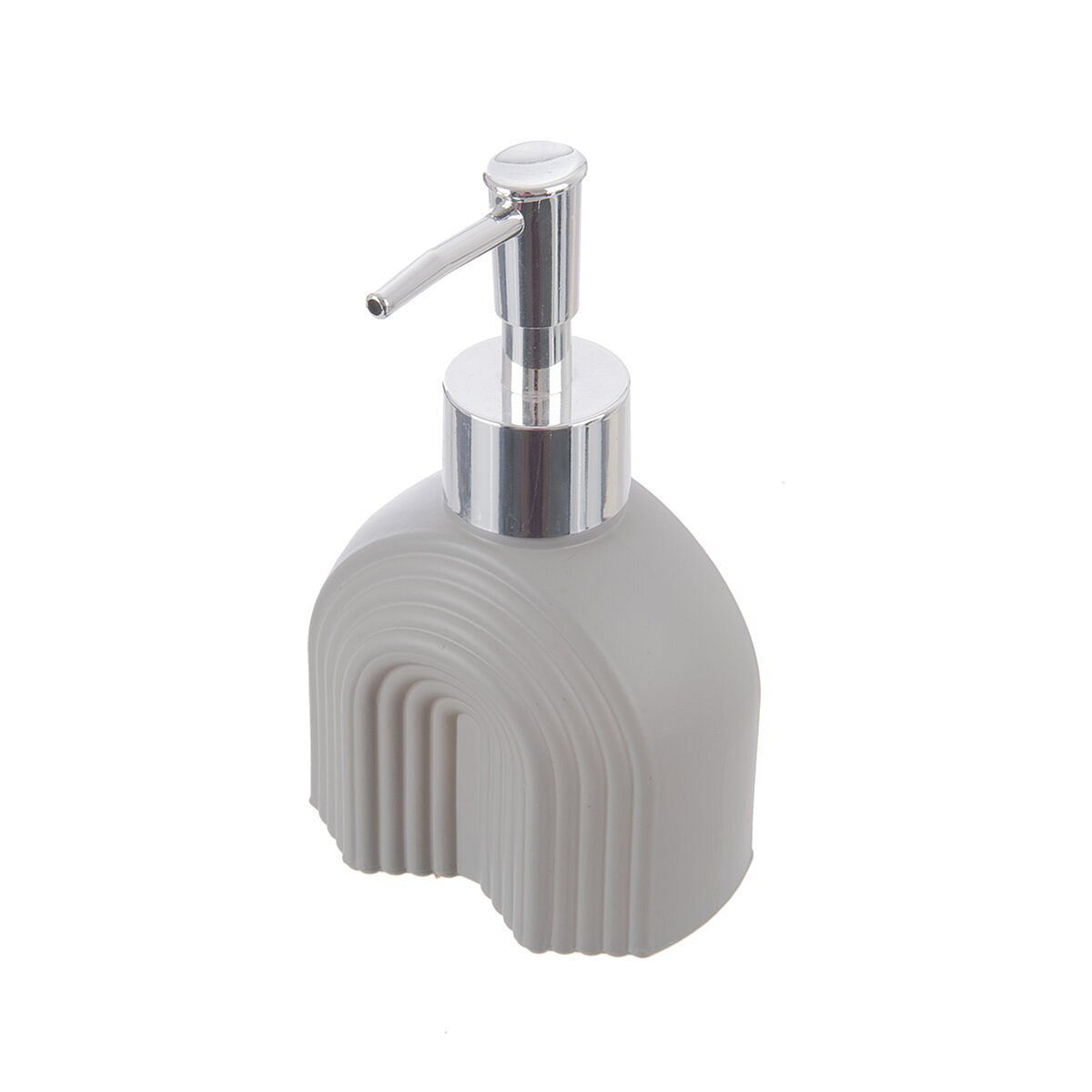 Tvarovaný dávkovač mýdla nebo saponátu bude dobře vypadat v koupelně i v kuchyni. Materiál: sklo s barevným nástřikem, plast ABS (hlava s pumpičkou), plast PE (trubička). Rozměry: objem 0,18 l, 8,5x6x14 cm.