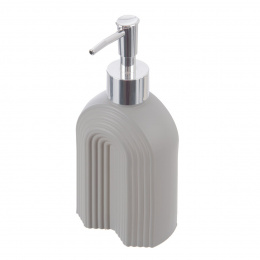 Tvarovaný dávkovač mýdla nebo saponátu bude dobře vypadat v koupelně i v kuchyni. Materiál: sklo s barevným nástřikem, plast ABS (hlava s pumpičkou), plast PE (trubička). Rozměry: objem 0,32 l, 8,5x6x18,5 cm.