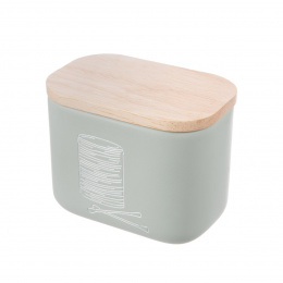 Dóza s víčkem na vatové tyčinky nebo tamponky z kolekce GREENISH ozdobí vaši koupelnu. Design by Orion. Materiál: polyresin s nástřikem, gumovníkové dřevo. Rozměry: 11x7x8,5 cm.