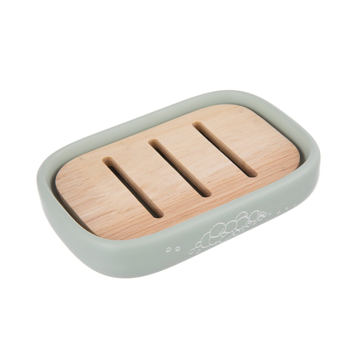 Držák klasického mýdla z kolekce GREENISH ozdobí vaši koupelnu. Díky němu se vaše mýdlo nerozmočí a umývadlo zůstane čisté. Designed by Orion. Dřevěnou vložku lze z držáku snadno vyjmout a vyčistit. Materiál: polyresin s nástřikem, gumovníkové dřevo. Rozměry: 13x9x2,5 cm.