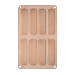 Silikonová forma na výrobu cukrářských piškotů Vám pomůže vytvořit krásné sladké i slané dezerty, domácí müsli tyčinky, zákusky a francouzské deserty typu éclairs. Můžete vytvořit nepečené i čokoládové zákusky, stejně dobře v ní ale tyto tvary můžete upéci z piškotového nebo litého těsta. Materiál: silikon. 8 tvarů. Snáší vysoké teploty (od -40 °C do +200 °C), nepřejímá chutě ani vůně z použitých potravin. Vhodná do myčky na nádobí, MVT, chladničky, mrazničky i trouby. Rozměry: 28x17x2 cm, jednotlivá formička 11,5x3,2 cm. Pozor na poškození formy ostrými předměty.