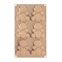 Forma na pečení Vám pomůže vytvořit medvídky, kterými potěšíte především děti. Můžete je upéci z piškotového nebo litého těsta, naplnit čokoládou, marmeládou, ozdobit polevou, můžete v nich zmrazit ovocnou dřeň... Ve formě připravíte 6 medvídků. Materiál: silikon – forma je lehká, skladná, nepřilnavá, těsto se v ní nepřipéká, nepohlcuje pachy z potravin, je odolná teplotám od -40 °C do +200 °C. Snadno se udržuje, lze ji mýt v myčce na nádobí. Forma je vhodná do plynové, elektrické i horkovzdušné trouby, do chladničky i mrazničky. Rozměry: 30,3x17,8x2cm, velikost medvídka 8,5x7 cm.