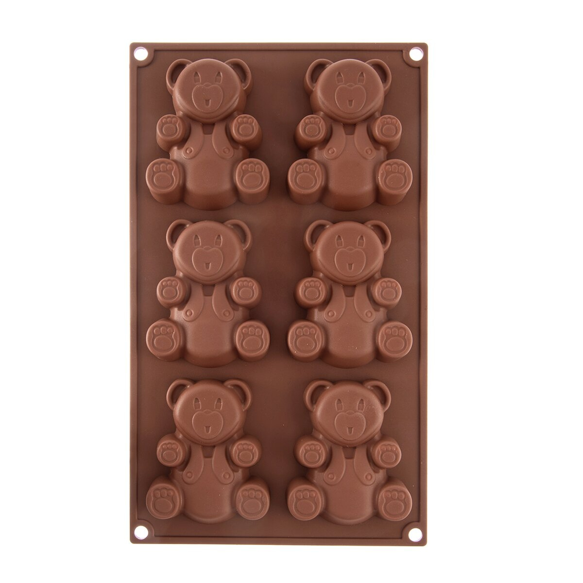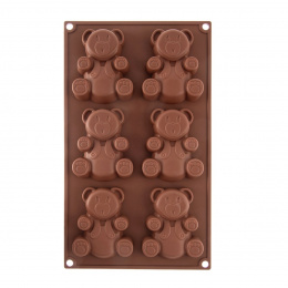 Forma na pečení Vám pomůže vytvořit medvídky, kterými potěšíte především děti. Můžete je upéci z piškotového nebo litého těsta, naplnit čokoládou, marmeládou, ozdobit polevou, můžete v nich zmrazit ovocnou dřeň... Ve formě připravíte 6 medvídků. Materiál: silikon – forma je lehká, skladná, nepřilnavá, těsto se v ní nepřipéká, nepohlcuje pachy z potravin, je odolná teplotám od -40 °C do +200 °C. Snadno se udržuje, lze ji mýt v myčce na nádobí. Forma je vhodná do plynové, elektrické i horkovzdušné trouby, do chladničky i mrazničky. Rozměry: 30,3x17,8x2cm, velikost medvídka 8,5x7 cm.