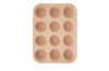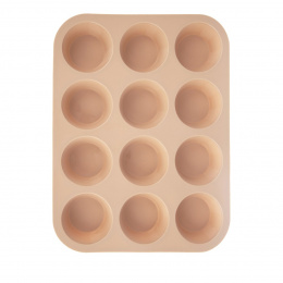 Silikonová forma na muffiny – 12 tvořítek. Je lehká a nepřilnavá, těsto se v ní nepřipéká, nepohlcuje pachy z potravin. Materiál: silikon - odolný vůči teplotám -40 °C až +220 °C. Vhodná do myčky na nádobí, mrazáku, trouby a MVT. Rozměry: 32,5x25x3 cm, pr. dna 5 cm.