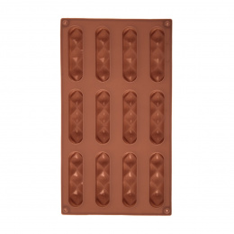 Silikonová forma na tyčinky Vám umožní snadno připravit a upéct oblíbené cukroví, bez pracného vyklápění jednotlivých formiček. Naráz upečete 12 ks pečiva. Využijete ji ale i k přípravě čokoládových dobrot. Při pečení se Vám těsto nepřipálí, sladkosti snadno vyklopíte. Materiál: silikon. 12 tvarů. Snáší vysoké teploty (od -40 °C do +200 °C), nepřejímá chutě ani vůně z použitých potravin. Vhodná do myčky na nádobí, MVT, chladničky, mrazničky i trouby. Rozměry: 29,5x16,8x1,5 cm, jednotlivá formička 2,1x8,2 cm. Pozor na poškození formy ostrými předměty.