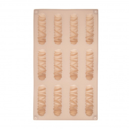 Silikonová forma na tyčinky kulaté Vám umožní snadno připravit a upéct oblíbené cukroví, bez pracného vyklápění jednotlivých formiček. Naráz upečete 12 ks pečiva. Využijete ji ale i k přípravě čokoládových dobrot. Při pečení se Vám těsto nepřipálí, sladkosti snadno vyklopíte. Materiál: silikon. 12 tvarů. Snáší vysoké teploty (od -40 °C do +200 °C), nepřejímá chutě ani vůně z použitých potravin. Vhodná do myčky na nádobí, MVT, chladničky, mrazničky i trouby. Rozměry: 29,2x17x1,8 cm, jednotlivá formička 2x8 cm. Pozor na poškození formy ostrými předměty.