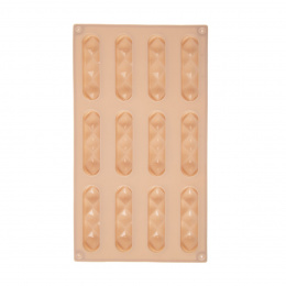 Silikonová forma na tyčinky Vám umožní snadno připravit a upéct oblíbené cukroví, bez pracného vyklápění jednotlivých formiček. Naráz upečete 12 ks pečiva. Využijete ji ale i k přípravě čokoládových dobrot. Při pečení se Vám těsto nepřipálí, sladkosti snadno vyklopíte. Materiál: silikon. 12 tvarů. Snáší vysoké teploty (od -40 °C do +200 °C), nepřejímá chutě ani vůně z použitých potravin. Vhodná do myčky na nádobí, MVT, chladničky, mrazničky i trouby. Rozměry: 29,5x16,8x1,5 cm, jednotlivá formička 2,1x8,2 cm. Pozor na poškození formy ostrými předměty.