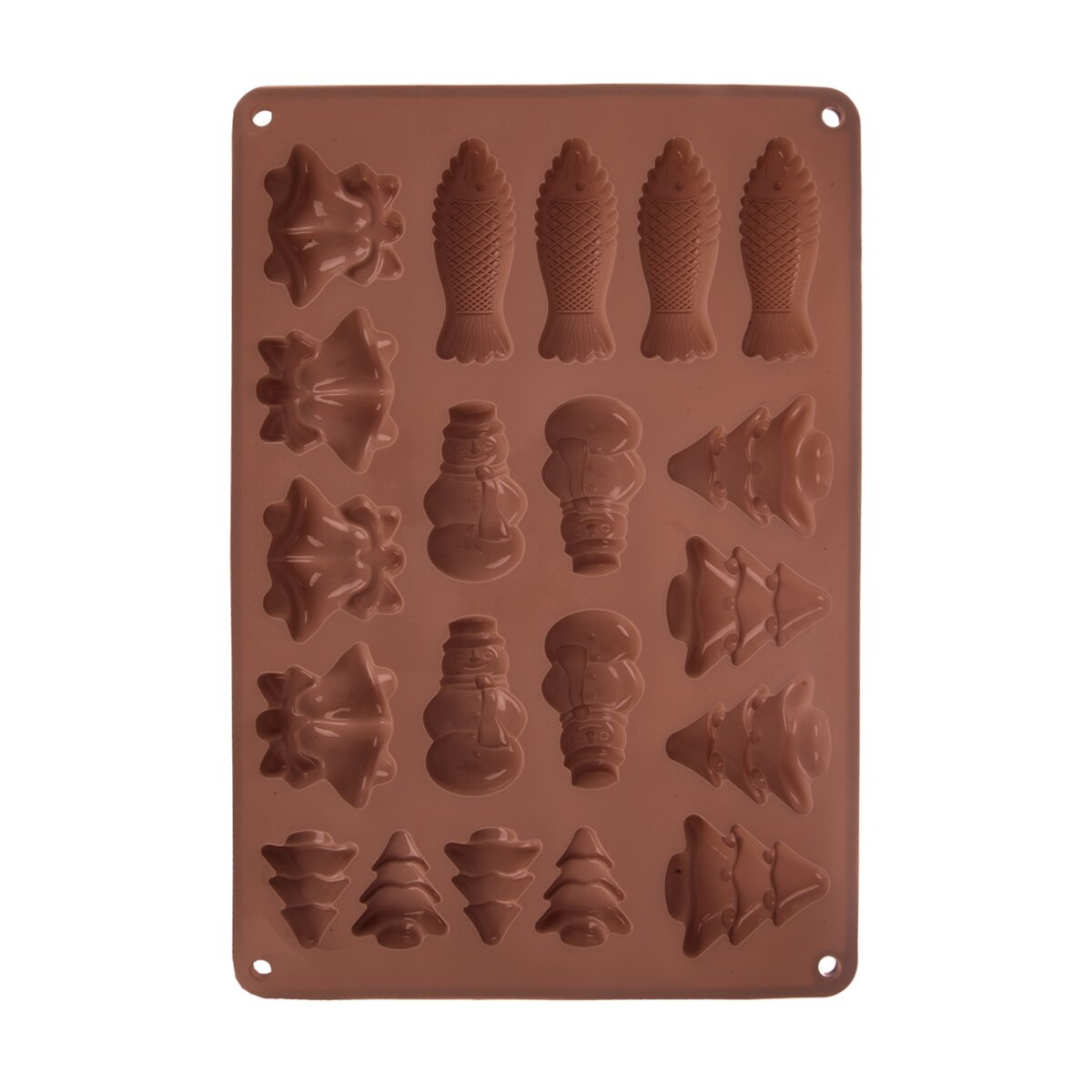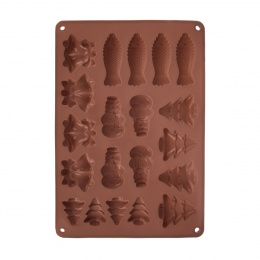 Silikonová forma na pracičky Vám umožní snadno připravit a upéct oblíbené cukroví, bez pracného vyklápění jednotlivých formiček. Najednou upečete 20 kusů pečiva v pěti různých druzích. Využijete ji ale i k přípravě čokoládových dobrot. Při pečení se Vám těsto nepřipálí, sladkosti snadno vyklopíte. Materiál: silikon. Snáší vysoké teploty (od -40 °C do +200 °C), nepřejímá chutě ani vůně z použitých potravin. Vhodná do myčky na nádobí, MVT, chladničky, mrazničky i trouby. Rozměry: 34,5x24,5x1,2 cm, ryba d. 8,6 cm, sněhulák v. 6,7 cm, zvonečky v. 5,5 cm, stromek velký v. 6,6 cm, stromek malý v. 4,6 cm. Pozor na poškození formy ostrými předměty.
