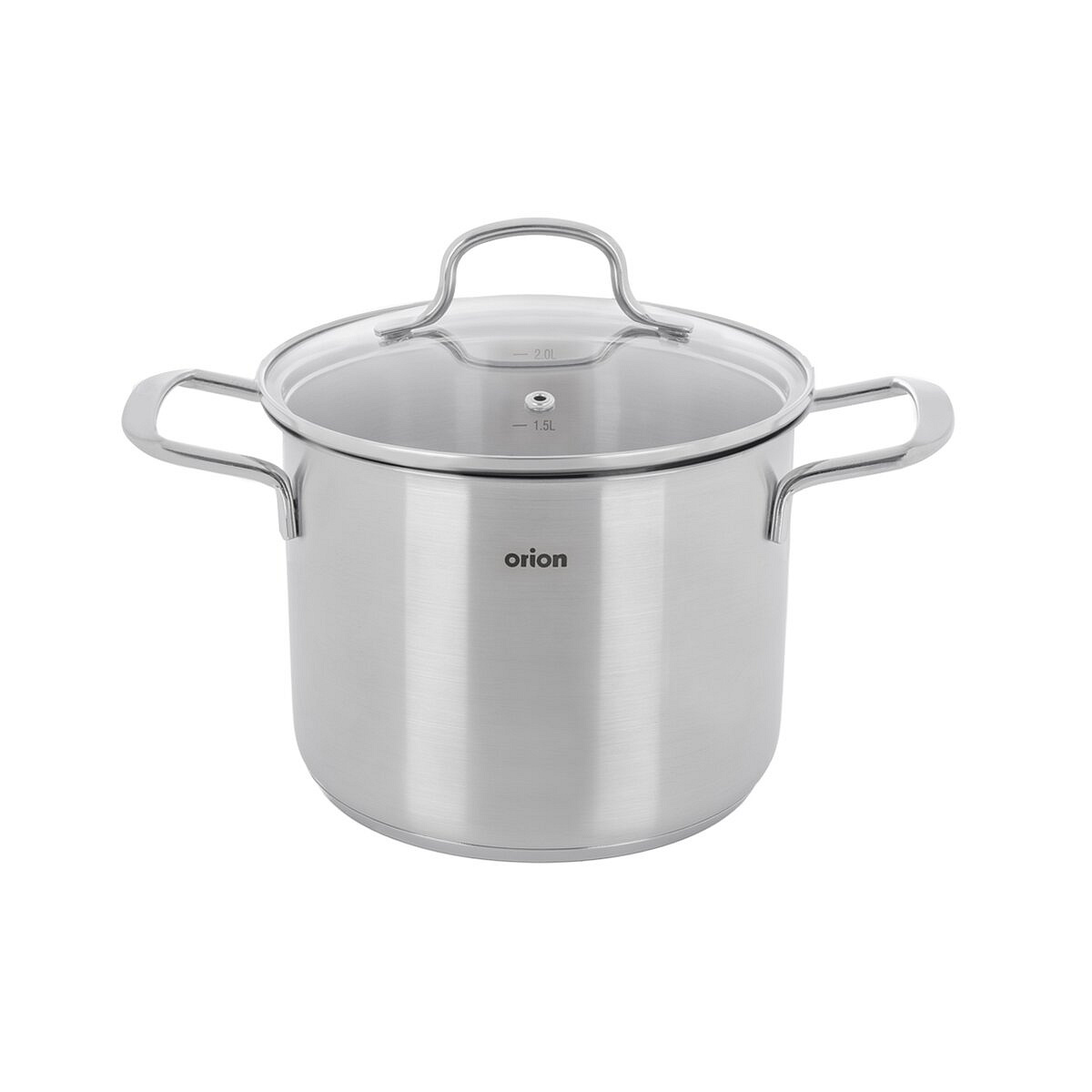 Hrnec se skleněnou poklicí s otvorem pro únik páry. Nerezové hrnce představují díky používaným technologiím a kvalitním materiálům výrobek vhodný pro každou moderní domácnost a jsou ideální cestou ke zdravé výživě, dietní, ekonomické a estetické přípravě pokrmů. Nabízené nádoby jsou vyrobeny z vysoce kvalitní nerezové oceli. Naakumulovaná energie předává teplo dále do nádoby – tepelný zdroj vypínáme v předstihu. Nádobí lze používat na všechny typy spotřebičů včetně indukce i do trouby (s poklicí však do 200 °C). Vhodné i do myčky nádobí. Nepoužívejte v mikrovlnné troubě. Poslouží k fritování, napařování, vaření s minimálním množstvím tuku, bez ztráty vitamínů a minerálů obsažených v potravinách - nádobí představuje dokonale hygienické prostředí pro vaření a uchování potravin - zachování přirozené chuti a hmotnosti upravovaných potravin - vnější a vnitřní povrch nádob je vysoce leštěný, takže brání usazování nečistot a zaručuje dokonalou údržbu - sendvičové dno s termoakumulačními vlastnostmi zaručuje rychlé a ekonomické vaření s výraznou úsporou energie - široká nabídka kastrolů, hrnců a rendlíků Vám umožňuje vytvořit si soupravu nádobí podle vlastních představ. Návod je součástí balení. Materiál: nerezová ocel 304, hliník (sendvičové dno) + poklice - sklo, nerez, silikonová podložka. Rozměry: objem 2,4 l, vnitřní měrná ryska 0,5/1/1,5/2 l, pr. 16 cm, š. 25,5 cm, v. 12,5 cm, v. s poklicí 19 cm.