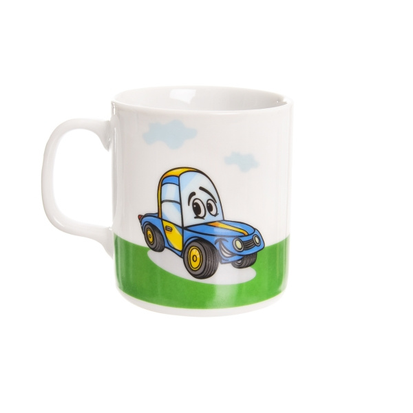 Hrnek s uchem. Materiál: porcelán. Dekor AUTO. Rozměry: objem 0,225 l, pr. 7 cm, v. 8 cm. Lze mýt v myčce na nádobí.