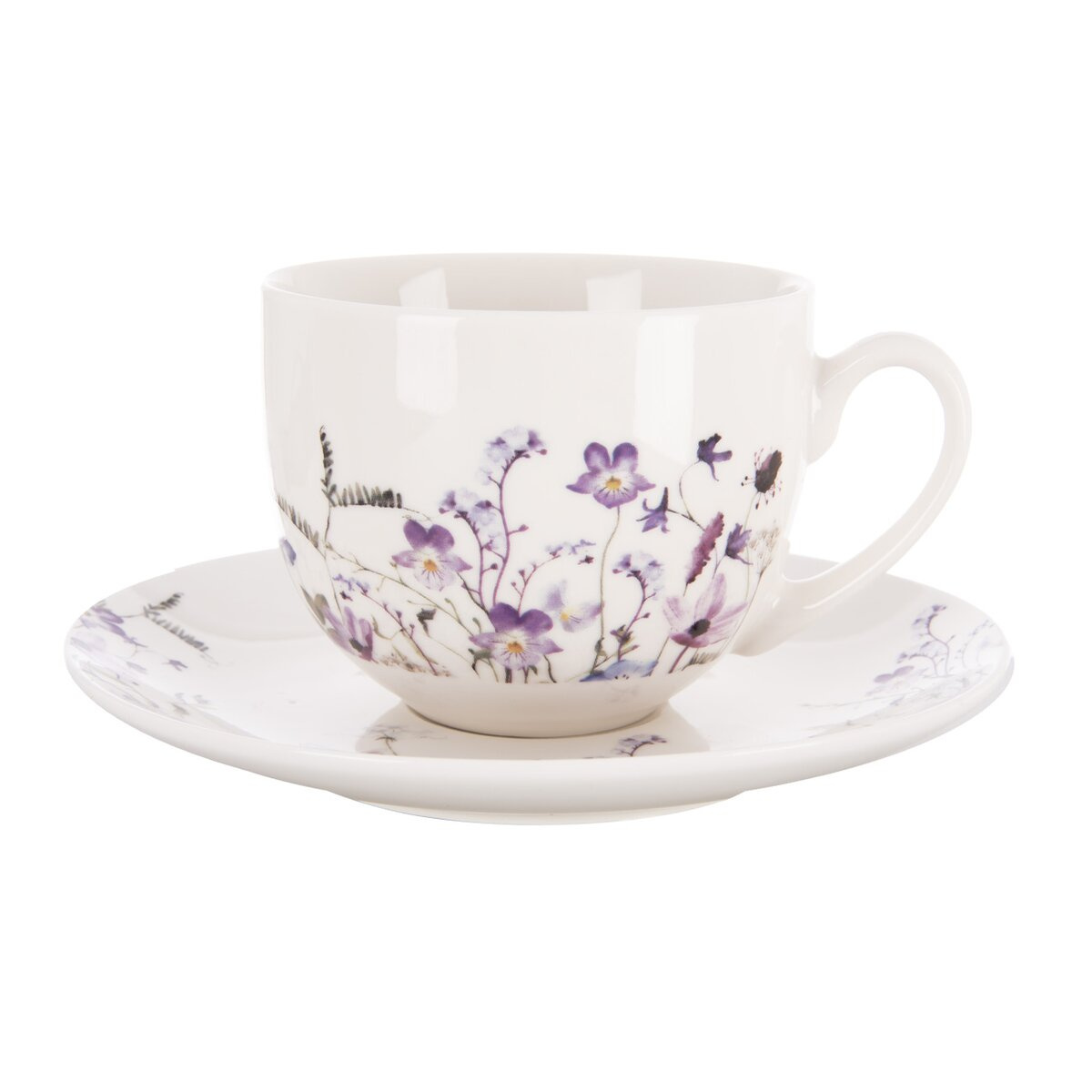 Hrnek s podšálkem s dekorem LOUKA. Materiál: porcelán. Rozměry: hrnek pr. 9 cm, v. 7 cm, o. 280 ml, podšálek pr. 15,5 cm, v. 1,7 cm. Lze mýt v myčce a použít v MVT.