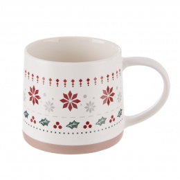 Hrnek s uchem se zimním dekorem. Materiál: porcelán. Rozměry: pr. 9,5 cm, v. 8,3 cm, o. 400 ml. Lze mýt v myčce a použít v MVT.