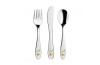 Dětský příbor s barevným dekorem letadel pro kluky. Obsahuje 3 ks - lžíci, vidličku a nůž. Materiál: kvalitní nerez. Tvar přizpůsobený dětem. Lze mýt v myčce na nádobí, ale nedoporučujeme, mohlo by dojít k porušení barevného dekoru, což později nemůže být důvodem reklamace. Rozměry: (délka/šířka) lžíce 15,5/3,5 cm, vidlička 15,5/2,5 cm, nůž 17/2 cm.