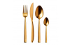 Sada luxusních nerezových příborů ve zlaté barvě GOLD v dárkovém balení. Sada 24 ks. Moderní jednoduchý tvar, atraktivní zlatý lesklý povrch. Materiál: kvalitní nerezová ocel, povrch úprava PVD – zlatý, který je vysoce odolný a zaručuje tak dlouhou životnost příborů. Příbory lze mýt v myčce na nádobí, ale pokud chcete zachovat neporušený povrch, pak to vzhledem k působení čisticích prostředků nedoporučujeme. Rozměry: 6x lžička – d. 14 cm, 6x lžíce – d. 21 cm, 6x vidlička – d. 21 cm a 6x nůž – d. 24 cm.
