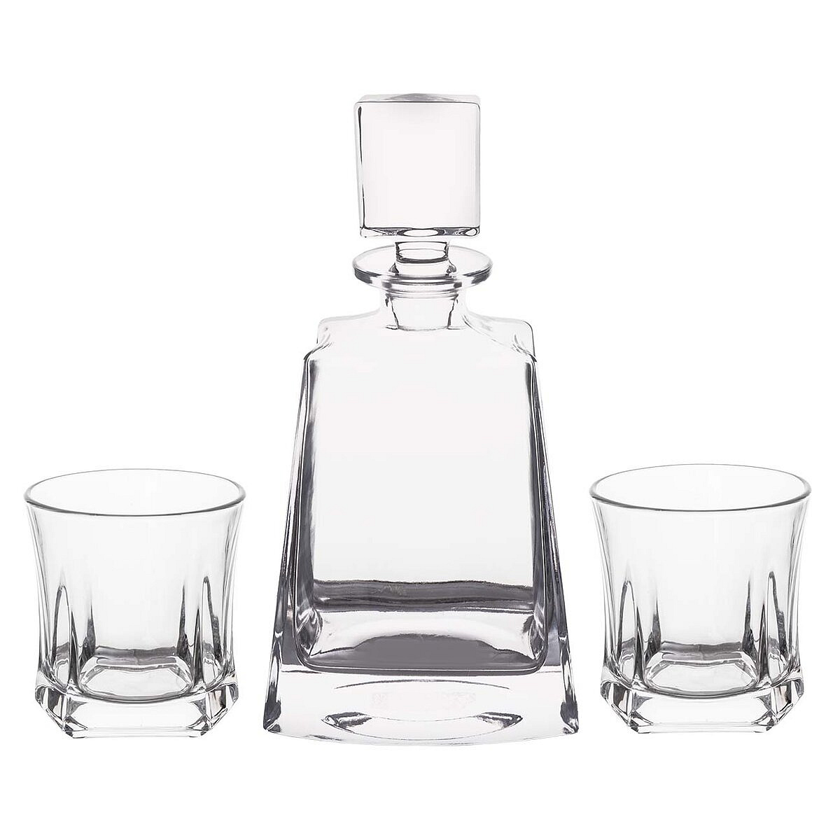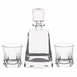 Luxusní sada je navržena pro milovníky prémiového alkoholu, kteří ocení nejen vytříbenou chuť, ale také samotný zážitek z podávání. Vychutnejte si whisky tak, jak si zaslouží – stylově, s elegancí a vkusem. Sada obsahuje jednu karafu na whisky a dvě elegantní sklenice, vyrobené z kvalitního skla, které podtrhne celkový dojem při servírování. Nadčasový styl s jemným moderním nádechem se skvěle hodí do jakéhokoli interiéru – ať už se stane ozdobou vitríny, nebo součástí pánského salónku. Celá sada je zabalena v elegantním dárkovém balení, což z ní činí ideální dárek pro každého, kdo si potrpí na styl a kvalitu. Karafa ani sklenice nejsou vhodné do MVT a myčky nádobí. Sada 3 kusů. Materiál: sklo. Rozměry: karafa d. 14 cm, š. 8,5 cm, v. 27 cm, o. 780 ml (užitný o. 760 ml), sklenice pr. 8,7 cm, v. 9,5 cm, o. 310 ml.