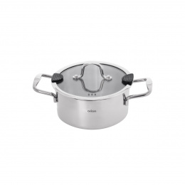 Nerezový kastrol je vybaven skleněnou poklicí s výlevkou, která slouží k bezpečnému a pohodlnému vypouštění vody či cezení. Výlevka zároveň umožňuje únik páry během vaření. Poklice obsahuje silikonové prvky, které usnadňují cezení bez potřeby použití utěrky nebo jiných ochranných pomůcek. Teplotní odolnost poklice i silikonových částí činí až 200 °C, a to vzhledem k použitým materiálům – tepelně odolnému sklu a silikonu. Kastrol je vhodný pro použití na indukci, lze jej mýt v myčce nádobí a je možné jej používat i v troubě. Návod k obsluze je součástí balení. Materiál: nerezová ocel 304, hliník (sendvičové dno) + poklice - sklo, nerez, silikon. Rozměry: o. 1,2 l, pr. 16 cm, v. s poklicí 10 cm, v. 7 cm, š. 24,5 cm.