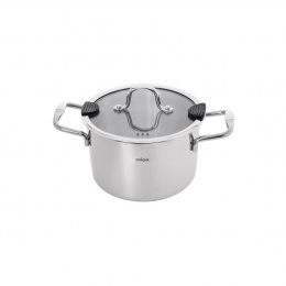 Nerezový kastrol je vybaven skleněnou poklicí s výlevkou, která slouží k bezpečnému a pohodlnému vypouštění vody či cezení. Výlevka zároveň umožňuje únik páry během vaření. Poklice obsahuje silikonové prvky, které usnadňují cezení bez potřeby použití utěrky nebo jiných ochranných pomůcek. Teplotní odolnost poklice i silikonových částí činí až 200 °C, a to vzhledem k použitým materiálům – tepelně odolnému sklu a silikonu. Kastrol je vhodný pro použití na indukci, lze jej mýt v myčce nádobí a je možné jej používat i v troubě. Návod k obsluze je součástí balení. Materiál: nerezová ocel 304, hliník (sendvičové dno) + poklice - sklo, nerez, silikon. Rozměry: o. 2,3 l, pr. 18 cm, v. s poklicí 13 cm, v. 10 cm, š. 26,5 cm.