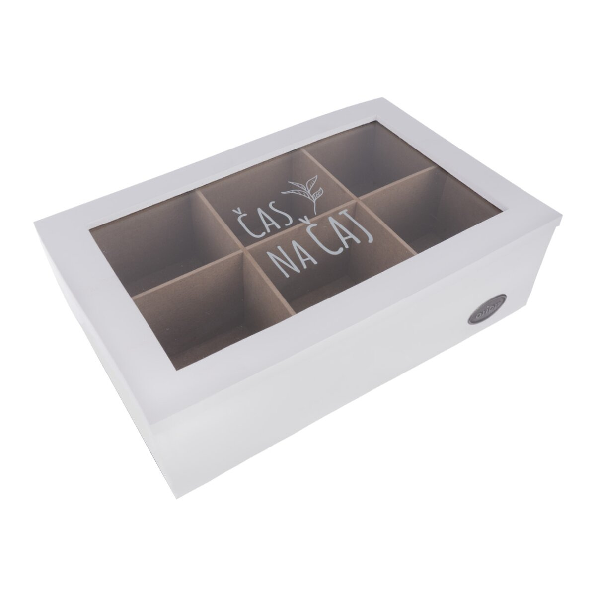Kazeta na čajové sáčky je praktickým a elegantním řešením pro všechny milovníky čaje, kteří chtějí mít své oblíbené čajové sáčky přehledně uspořádané a vždy po ruce. Dřevěná kazeta s rozděleným vnitřním prostorem umožňuje snadné roztřídění čajů podle druhů, chutí nebo značek. Její čistý a nadčasový design se hodí do každé kuchyně, jídelny i kanceláře. Průhledné víko zajišťuje okamžitý přehled o obsahu bez nutnosti kazetu otevírat. Materiál: dřevovláknitá deska MDF, sklo, kov. Rozměry: 24x16x7 cm. Designed by Orion.