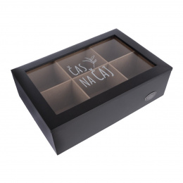 Kazeta na čajové sáčky je praktickým a elegantním řešením pro všechny milovníky čaje, kteří chtějí mít své oblíbené čajové sáčky přehledně uspořádané a vždy po ruce. Dřevěná kazeta s rozděleným vnitřním prostorem umožňuje snadné roztřídění čajů podle druhů, chutí nebo značek. Její čistý a nadčasový design se hodí do každé kuchyně, jídelny i kanceláře. Průhledné víko zajišťuje okamžitý přehled o obsahu bez nutnosti kazetu otevírat. Materiál: dřevovláknitá deska MDF, sklo, kov. Rozměry: 24x16x7 cm. Designed by Orion.