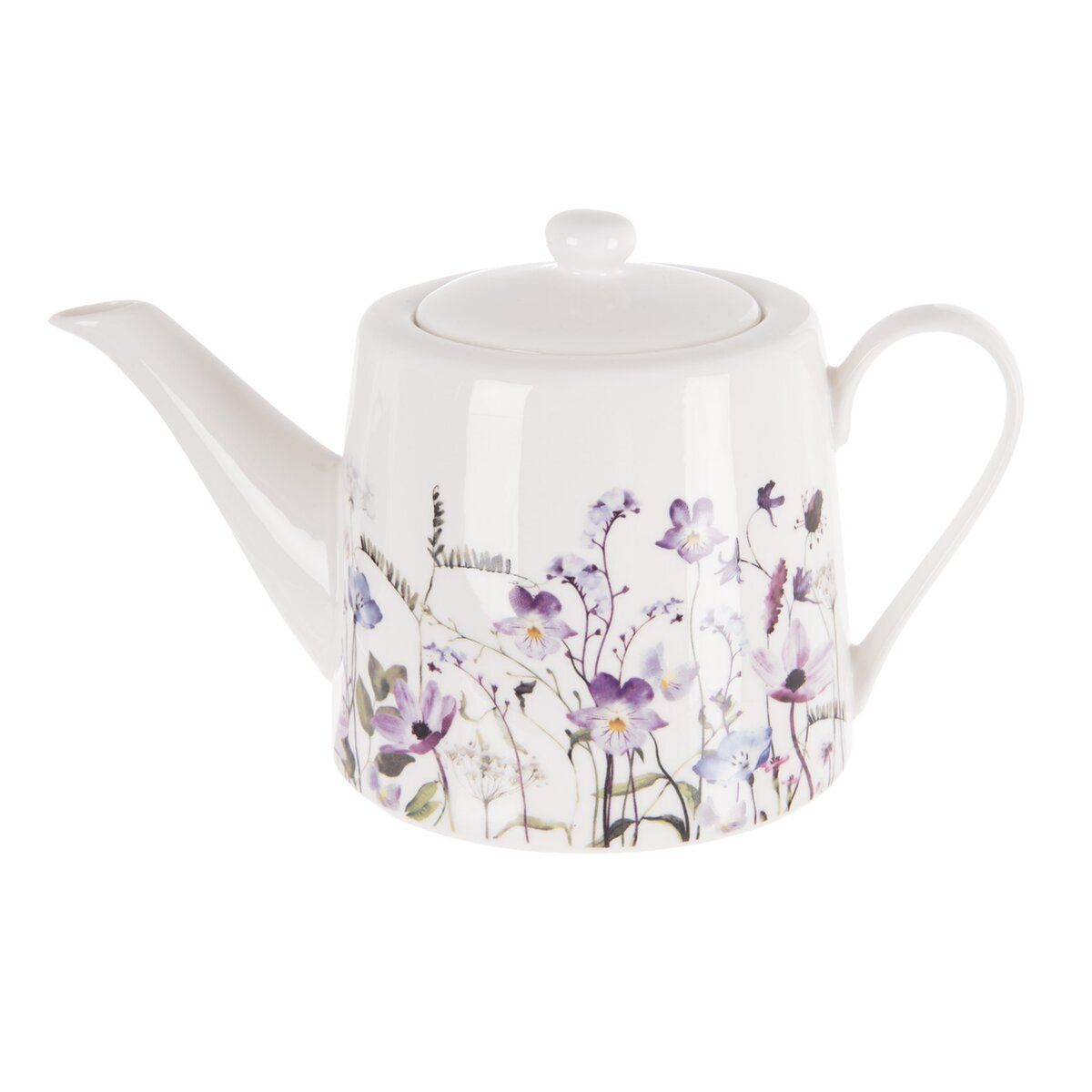 Konvice s víčkem s dekorem LOUKA. Materiál: porcelán. Rozměry: pr. 13 cm, v. 13 cm, o. 1 l. Lze mýt v myčce a použít v MVT.