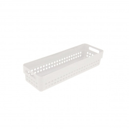 Košík je určený na uložení různých drobností, jako jsou tužky, potřeby na šití a další. Je praktickým pomocníkem pro přehledné uspořádání věcí v domácnosti. Není vhodný do myčky. Materiál: plast PP. Rozměry: 23,5x7,5x5 cm.