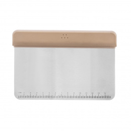 Kuchařská špachtle z Vás rázem udělá profesionální kuchaře. S její pomocí snadno přemístíte nakrájenou zeleninu do pánve, dokonale vyčistíte kuchyňské prkénko, pomůže Vám rychle rozsekat i vařenou zeleninu nebo vajíčka, rozdělit těsto. Můžete ji využít i při vaření halušek, různých zavářek do polévek a při zpracování těsta. Pomocník k nezaplacení. Díky rukojeti z termoplastové gumy skvěle padne do ruky. Na hraně vyznačeny jednotky délky v cm (0 až 15 cm). Materiál: nerezová ocel, termoplastická guma (TPR). Rozměry: 17x11,5 cm. Nevhodné do myčky.