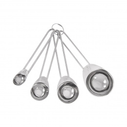 Sada nerezových odměrek na drobné sypké či tekuté ingredience např. na koření, bylinky, kávu, čaj, prášek do pečiva, vanilkový extrakt, jedlou sodu, ocet atd. Odměrky jsou spojené kroužkem, ale lze je oddělit. Na všech odměrkách je uvedena jednotka Tsp/Tbsp (čajová/polévková lžíce). Odměření je mnohem přesnější než odhad běžnou lžičkou z příborníku. Materiál: nerezová ocel. Rozměry: 1,25 ml/pr. 1,9 cm/d. 10,5 cm, 2,5 ml/2,5 cm/d. 11,5 cm, 5 ml/pr. 3,2 cm/d. 12 cm, 15 ml/pr. 4,3 cm, d. 12,2 cm. Lze mýt v myčce.