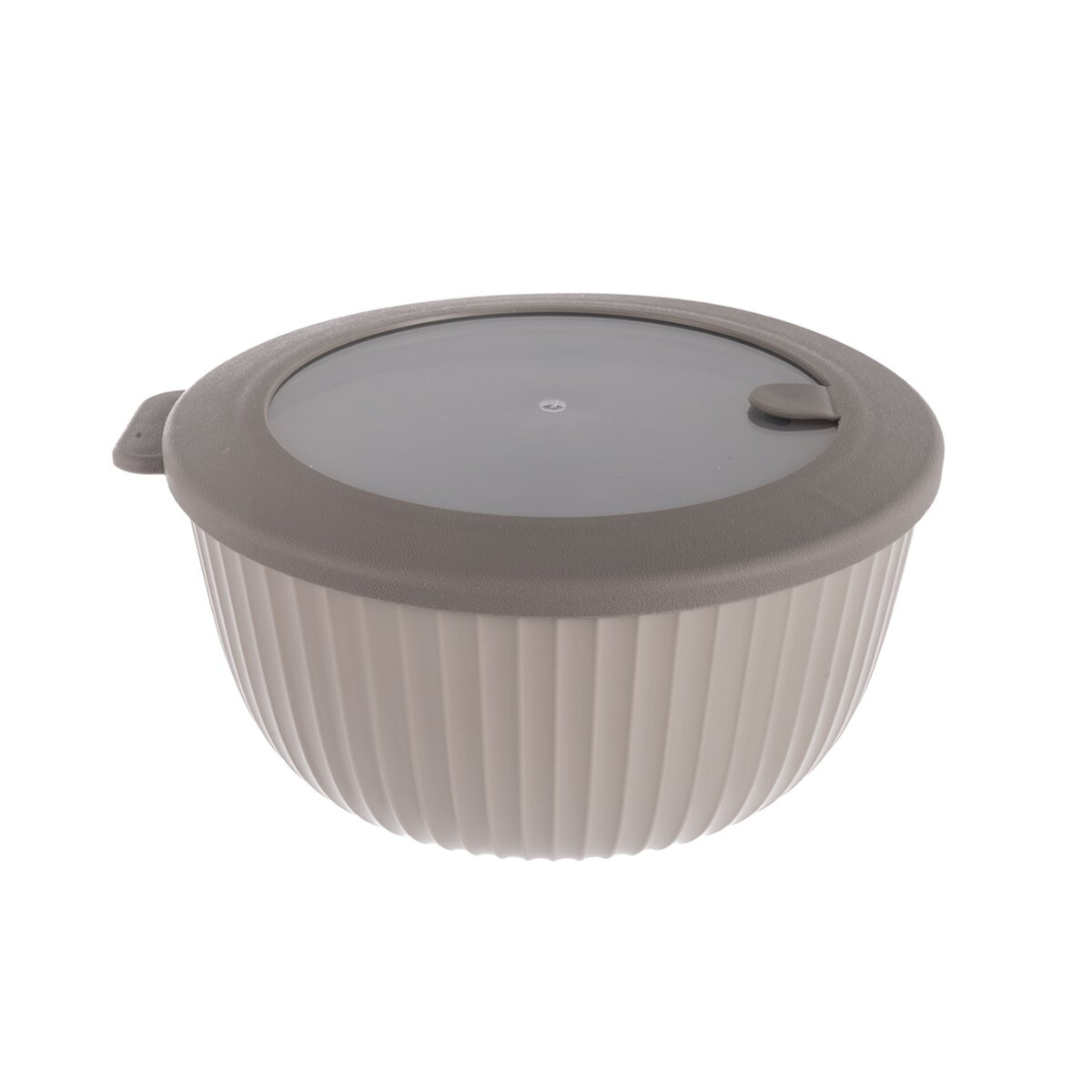 Miska s víkem je praktickým a univerzálním řešením pro skladování a ohřev potravin. Je odolná vůči teplotám od –25 do +95 °C, takže ji lze bezpečně používat v mrazáku i myčce. Víko je uprostřed průhledné, takže máte přehled o tom, co je uvnitř, a je vybaveno odklopitelným otvorem pro bezpečný ohřev v mikrovlnné troubě. Samotná miska má atraktivní strukturovaný design, který dodává výrobku moderní a estetický vzhled. Výrobek je BPA free, takže je bezpečný pro zdraví a vhodný pro každodenní použití. Materiál: plast PP + TPE/PP víko. Rozměry: objem 1,3 l, pr. 16,5 cm, v. 8,5 cm.