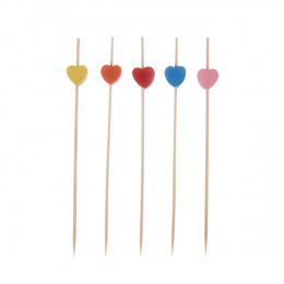 Bambusová napichovátka s barevnou ozdobou ve tvaru SRDÍČKA využijete při servírování drobného slaného nebo sladkého pohoštění při různých příležitostech, oslavách, na párty, na valentýnskou oslavu... Ozdobí jednohubky, muffiny, dortíky, olivy, kousky sýra... Sada 20 ks. Mix barev. Materiál: bambus, javorové dřevo s barevným nástřikem (ozdoba). Rozměry: d. 12 cm.