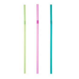 Nápojové brčko pro opakované použití s kloubem. Mix tří barev zelená, modrá, růžová. Sada 50 ks. Čištění je možné kartáčkem z naší nabídky 151447. Materiál: plast PP. Rozměry: pr. 0,6 cm, d. 21 cm. Není možné mýt v myčce.