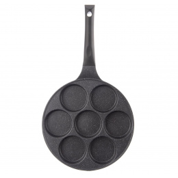 Pánev na volská oka/lívance je odlévaná masivní pánev se sníženým okrajem a s velmi kvalitním nepřilnavým povrchem PFLUON GRANIT. Je určena pro přípravu sázených vajec, bramboráčků, lívanečků atd. s minimální potřebou tuku. Sedm sekcí. Materiál: hliník s vynikajícím nepřilnavým povrchem PFLUON GRANIT a s profilovaným dnem, bakelit (držadlo). Možnost zavěšení. Rozměry: pr. 27 cm, v. 2,7 cm, pr. jedné sekce 8 cm, dostatečně hluboké sekce 1,8 cm. Vhodná na všechny typy spotřebičů včetně indukce. Doporučujeme použití kuchyňské chňapky. Vhodná do myčky na nádobí – vlivem agresivních čisticích prostředků může dojít k nepatrné oxidaci dna – tento jev nemá vliv na proces vaření, není zdravotně závadný a nemůže být předmětem reklamace.
