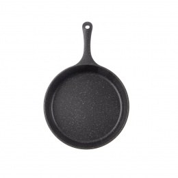 Odlévaná masivní pánev s velmi kvalitním nepřilnavým povrchem PFLUON GRANIT. Můžete na ni smažit, dusit, opékat s minimální potřebou tuku, připravíte jíšku, vajíčka. Tato celokovová hluboká pánvička se širokým dnem nabízí možnost zapékání v troubě a následně servírování na prkénku. Materiál: hliník s vynikajícím nepřilnavým povrchem PFLUON GRANIT a s profilovaným dnem. Možnost zavěšení. Rozměry: pr. 24 cm, vnější pr. 25 cm, v. 6 cm, celková v. 8 cm, d. 37,5 cm. Vhodná na všechny typy spotřebičů včetně indukce a trouby. Lze mýt v myčce na nádobí, avšak vlivem agresivních čisticích prostředků může dojít k nepatrné oxidaci dna. Tento stav nemá vliv na proces vaření, není zdravotně závadný a nemůže být důvodem reklamace. Pokud se chcete tomuto vyhnout, nádobí v myčce nemyjte. Doporučujeme použití kuchyňské chňapky, držadlo pálí, dbejte zvýšené opatrnosti. Na pánev se hodí skleněná poklice z naší nabídky 122580.
