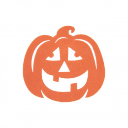 Podtácek ve tvaru dýně v typické oranžové barvě zabrání poničení nábytku kolečky od mokrých nebo orosených sklenic. Sada 4 ks. Využít můžete také jako dekoraci nebo materiál pro dětské Halloweenské tvoření. Materiál: polyester (filc). Rozměry: 10,3x10x0,2 cm.